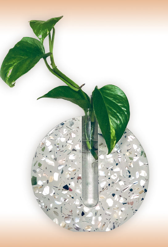 The sakura inlays are so beautiful on this wavy vase! It’s a summer stunner! The Alona vase is everything! This vase can propagate plant babies as well as hold any dry floral arrangement. The 1 inch tube can hold a good amount of florals. A beautiful shape to add to your shelfie!